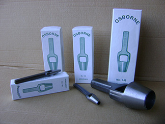 Osborne Arch Punches are drop forged in one piece from the finest special carbon steel. A unique feature of these punches is that they have an inside taper which permists the punchings to clear easily through the barrel. The cutting edge is fully tempered all the way through and properly finished to provide long use trouble free punching.